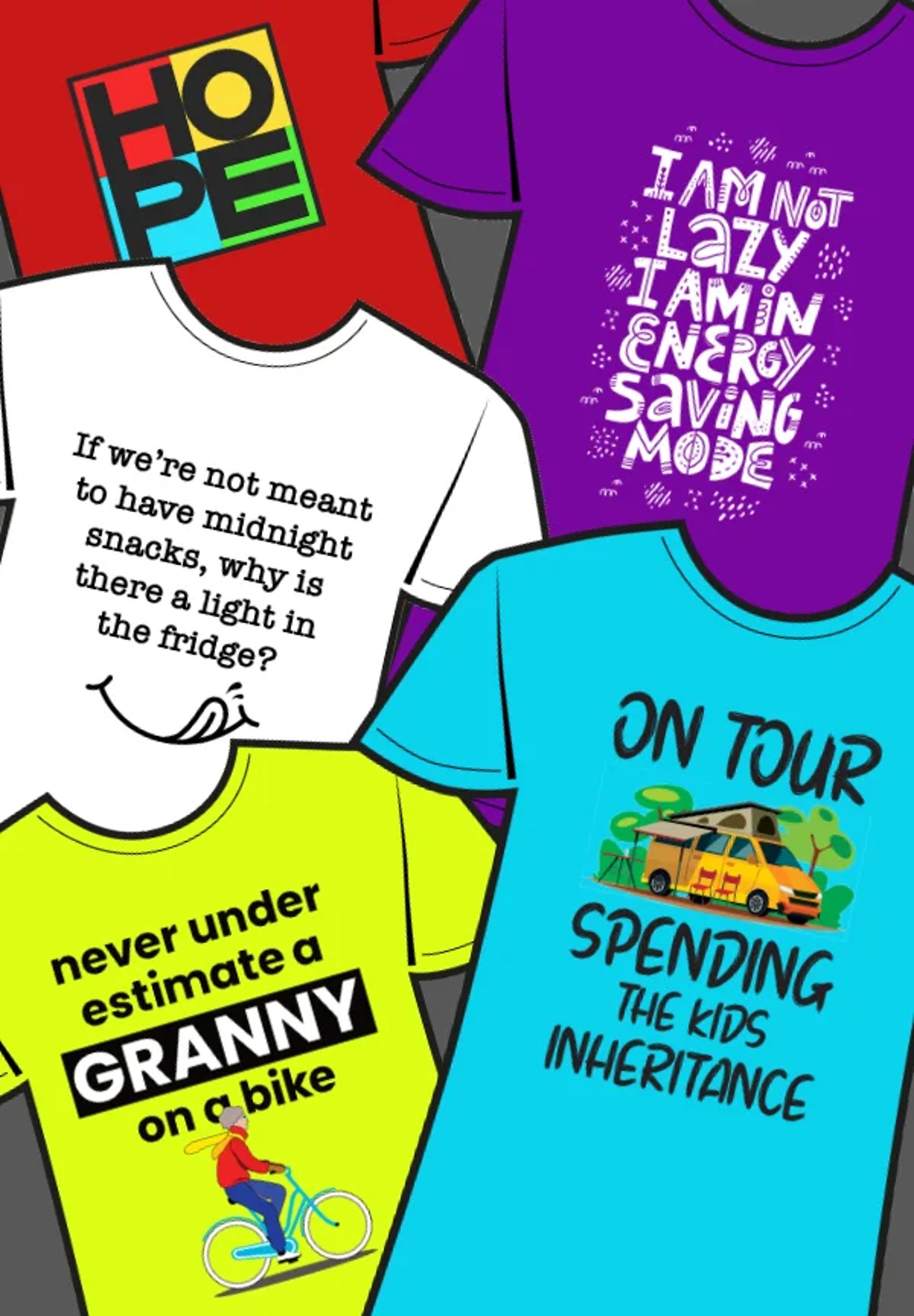 We create fun, funky t-shirts inspired by everyday moods — the tired days, the sarcastic thoughts, the chaotic moments, and the general confusion of modern life.
